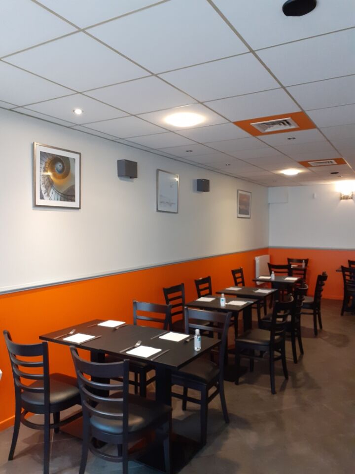 La salle dispose de 50 places assises et la terrasse de 10 places